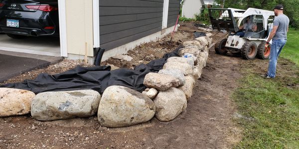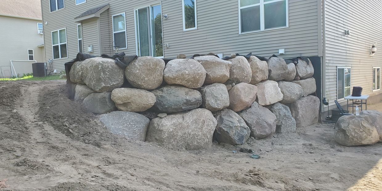 Our team can create a boulder wall for your home to keep erosion from happening and project your lawn and home.